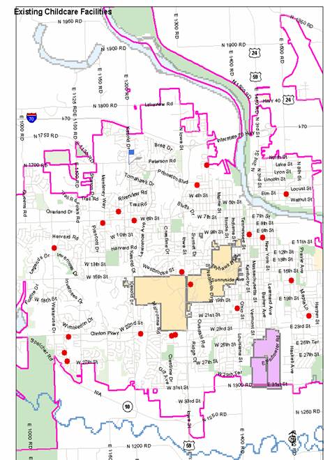 following map represents existing daycare facilities within the City of Lawrence.