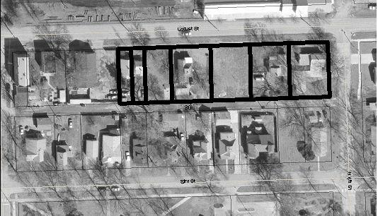 The 1.01 acre site contains 7 parcels (16 original 25’ wide by 110’ deep lots). Five single-family houses and 2 vacant parcels.