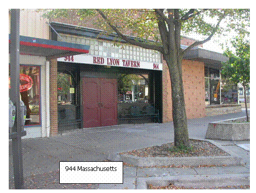 DR-08-71-04: 944 Massachusetts Street; Storefront Remodel; Certificate of Appropriateness Review and Certified Local Government Review. Submitted by Jerry Neverve, for the property owner of record. The property is located in Lawrence’s Downtown Historic District, National Register of Historic Places. The property is also located in the environs of the Hanna Building (933 Massachusetts), Lawrence Register of Historic Places, and the Shalor Eldridge House (945 Rhode Island), Kansas and Lawrence Registers of Historic Places. The property is located in the Downtown Conservation Overlay District.