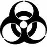 All capital letters, bold, and a minimum 1/2” high with biohazard logo.
