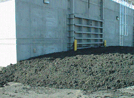 Biosolids are dewatered and stored for approximately 4-5 months in on-site storage bunkers. removed three times annually
