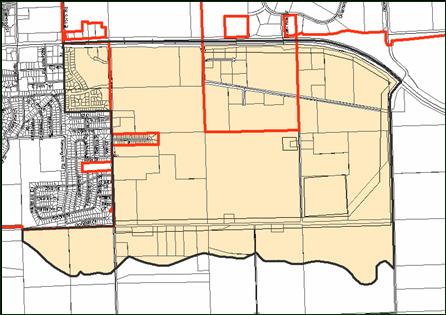 The Southeast Area Plan encompasses all of Section 9, west ½ of Section 10 and portions of Sections 15 & 16 in Township 13 S, Range 19 E. The area plan boundaries are E1750 Rd (Noria Rd) to the east; the Wakarusa River floodplain to the south; O’Connell Road (E1600) to the west; and K-10 (E. 23rd Street) to the north. The study area is located completely within the Urban Growth Area (Service Area 1[1]). The majority of the study area lies outside of the city limits of Lawrence.