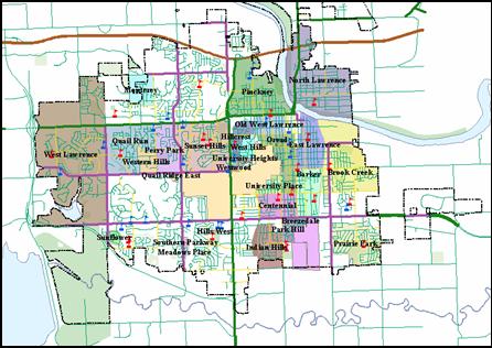Similarly, neighborhood boundaries should not be hard edges. It is reasonable that much of the residential area will be either incorporated into the existing Prairie Park neighborhood or established as something like East Prairie Park. The boundaries of neighborhoods are not always confined by arterial streets as is exampled by the West Lawrence Neighborhood and the Brook Creek Neighborhood. Additionally, neighborhoods can include more than just residential uses such as neighborhood commercial and office uses. To build a neighborhood the full range of mixed use options must be available.