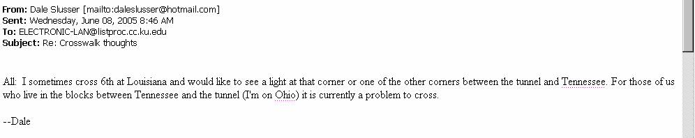 Subject: 6th and Louisiana crossing