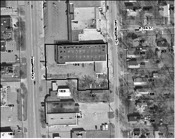 The existing building will be remodeled from the existing footprint of 14,550 square feet to 9,739 gross square feet. A variance was granted on June 2, 2005 by the BZA for a reduction of the required building setback from 25 feet to 0 feet. This variance recognizes an existing building condition along the eastern side of the building. While the building is decreasing in size, the number of parking spaces is increasing. The site will gain an additional six parking spaces. Variances were also granted on June 2, 2005 for a reduction in the required greenspace between parking areas and street rights-of-way from 15 feet to 0 feet along both Massachusetts and New Hampshire Streets. Access to the site is provided by four 25-foot wide drives: one to the east, one to the west, and two at the northwestern edge.