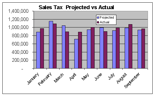 ● Another component of the increase in General Fund revenue was a $538,000, or 3.5%, rise in sales tax distributions. Year to date city and county sales tax distributions are $201,000 over projections.