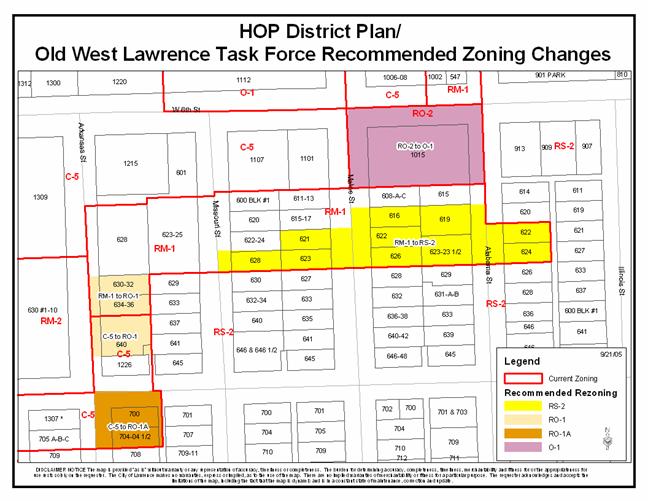 Z-09-53-05: A request to rezone a tract of land approximately 0.53 acre from C-5 (Limited Commercial District) to RO-1A (Residence-Office District). The property is generally described as being located at the southeast corner of W. 7th Street and Arkansas Street [700 Arkansas & 704-704 ˝ Arkansas]. Initiated by the City Commission on September 27, 2005 based on recommendations in the HOP District Plan.