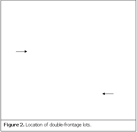 Street trees will need to be planted in both the front and rear yards of the double frontage lots. These double frontage lots are located between Three Forks Drive and George Williams Way on the west side of the development, and between Chimney Rocks Circle and Stoneridge Drive on the southeast. (see Figure 2) A landscape easement along the rear of these lots will insure space will be available for street trees. Utility easements can be shown to cross the landscape easement where necessary.