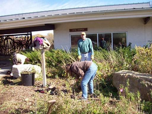 Vinland Valley Nursery has created a site plan for a demonstration garden using the front of the Prairie Park Nature Center building as a residential example displaying wildlife friendly, eco-friendly plants and recycled hardscaping in a beautifully designed landscape. The idea is to create a low maintenance garden designed to provide wildlife habitat, using xeric and native plants that conserve resources and grow well without the need for chemical applications that visitors might replicate when planning their own home landscaping.
