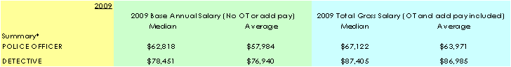 Below is information related to 2009 base and gross total salaries for MOU-covered Police Department staff.