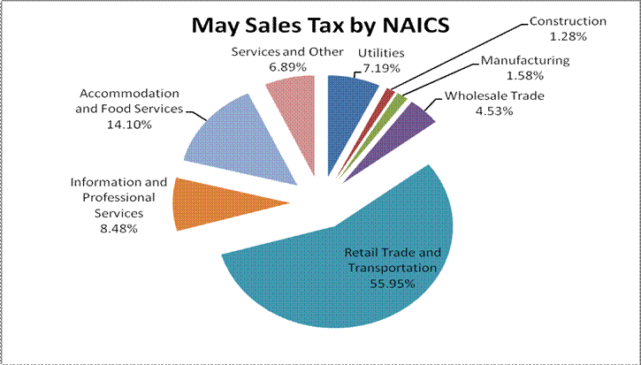 A spreadsheet showing total monthly sales tax distributions since 2001 is attached. Additional sales tax information is provided in the tables and graphs below.