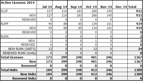 License Statuses - These are license statuses as reflected on the last day of each month. |