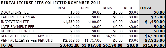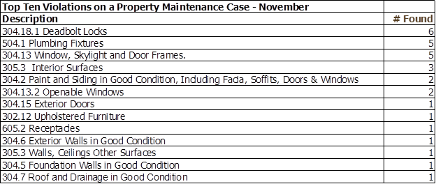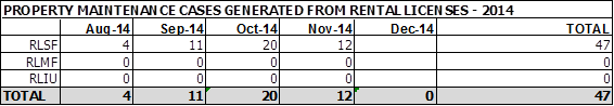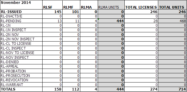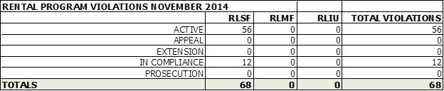 Rental Licensing and Inspection Program Report – November Reporting Month