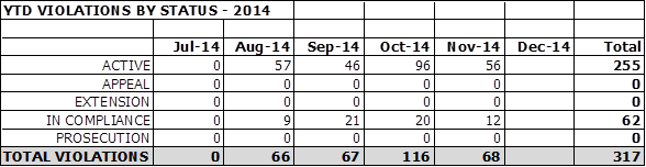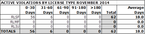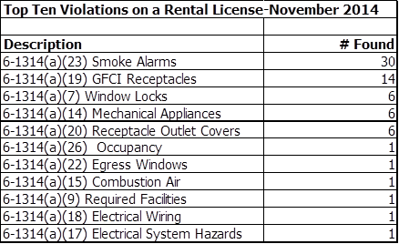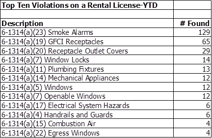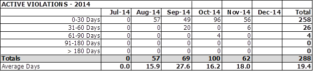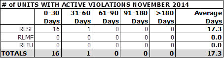 *The 6 violations between 31-60 days are all part of one rental license involving one unit. All 6 of the violations were given an extension due to extenuating circumstances.