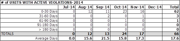 *The unit with violations between 31-60 days was given an extension due to extenuating circumstances.