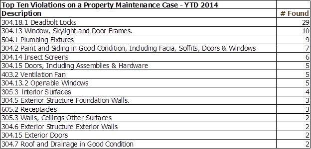 Report 10c: Top 10 PMC violations generated from a Rental Inspection – YTD