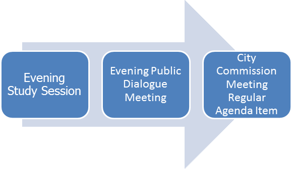 2. Evening Study Session: We propose an evening study session that would commence at 6 p.m. so that the public can attend and participate. The study session would be televised and recorded. The intent of this meeting is to present the entirety of issues to the Commission. Public comment and Commission decisions on the issues would occur at later meetings. We propose 3-4 hours be allotted for this meeting. The Study Session agenda would include the following items with the presenters noted: