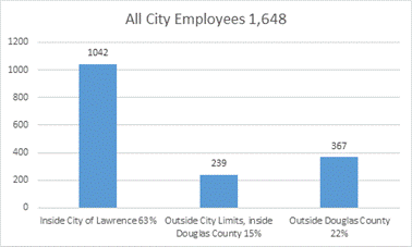 Over half of all city employees choose to live within the city limits of Lawrence without any requirement to do so. This shows a positive deference to living and participating in our community. 70% live within our county. The only study that researches whether compelling employees to reside within a city indicates that residency requirements are “simply a barrier to hiring the most qualified employees” and hold no economic, service or population benefit. This tells me that regardless of opinion or theory for which one may prescribe, it is not in the best interests of the community or this organization to require employees to live within the city limits. In fact, it might become a hindrance to hiring the most qualified staff.